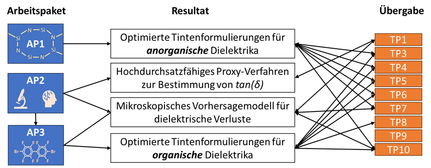 Übergeordnetes Ziel dieses Teilprojekts ist die Entwicklung von neuen dielektrischen Materialien für Hochfrequenzanwendungen, die kompatibel zur Verarbeitung mittels AJP sind. Die Forschungsstrategie, die dafür entwickelt werden soll, basiert auf der autonomen Materialentwicklung, bei dem eine semi-automatisierte Syntheseanlage mit einem KI basiertem Optimierungsalgorithmus gekoppelt wird. Damit konnten wir bereits zeigen, dass es möglich ist, Materialräume mit mehreren Millionen an möglichen Molekülen zu untersuchen und die für die Anwendung optimierten Strukturen zu identifizieren.